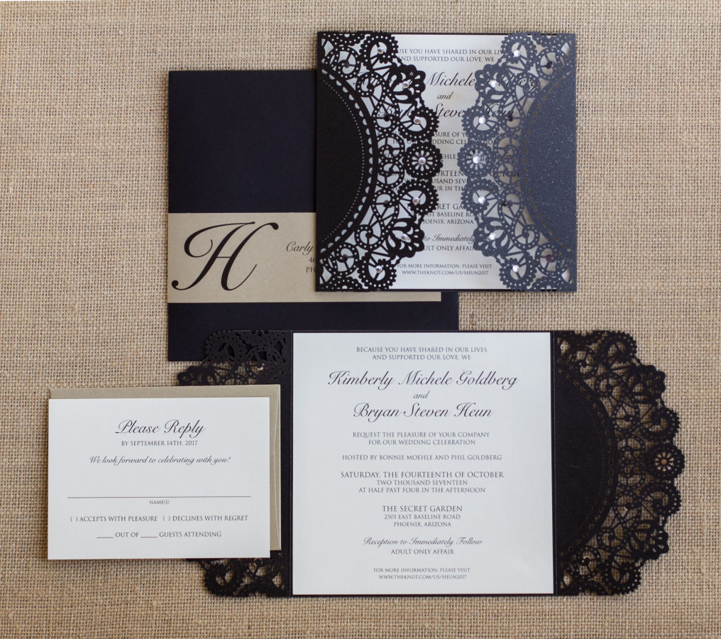 Glittering Black Lasercut Invite Suite